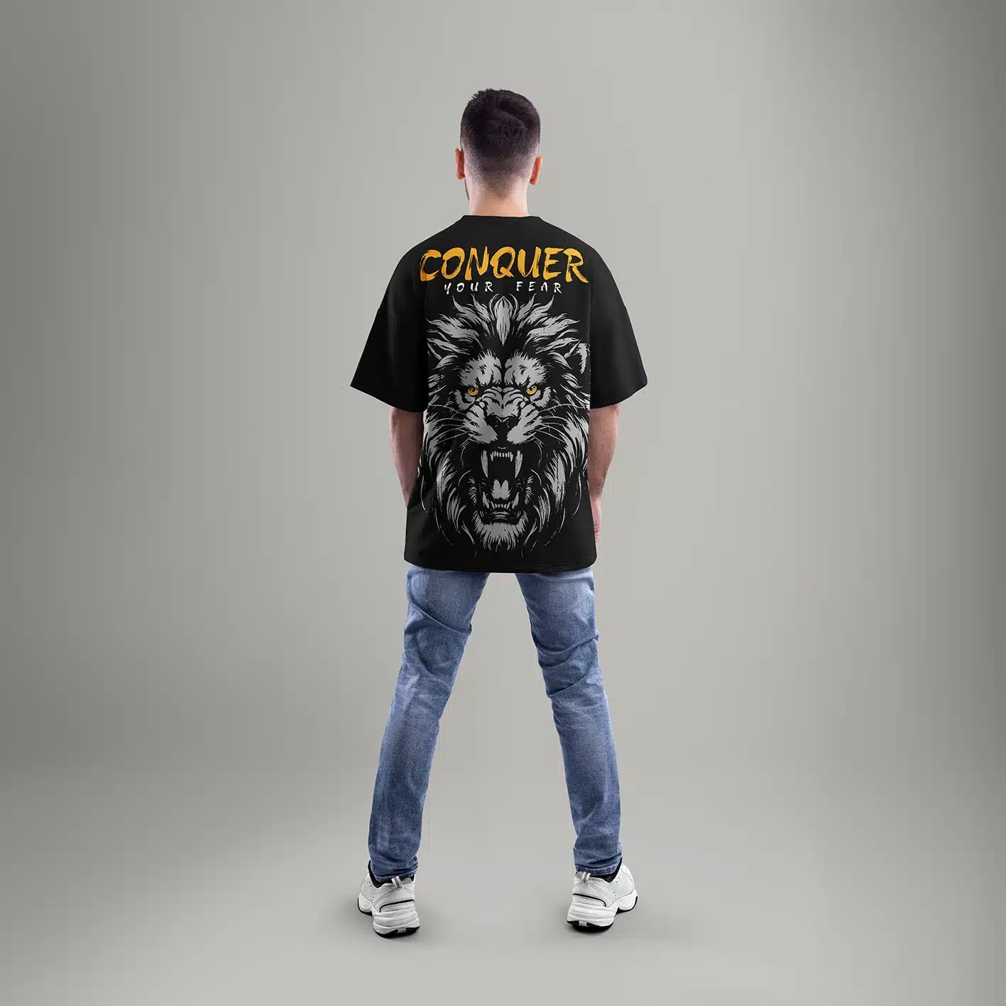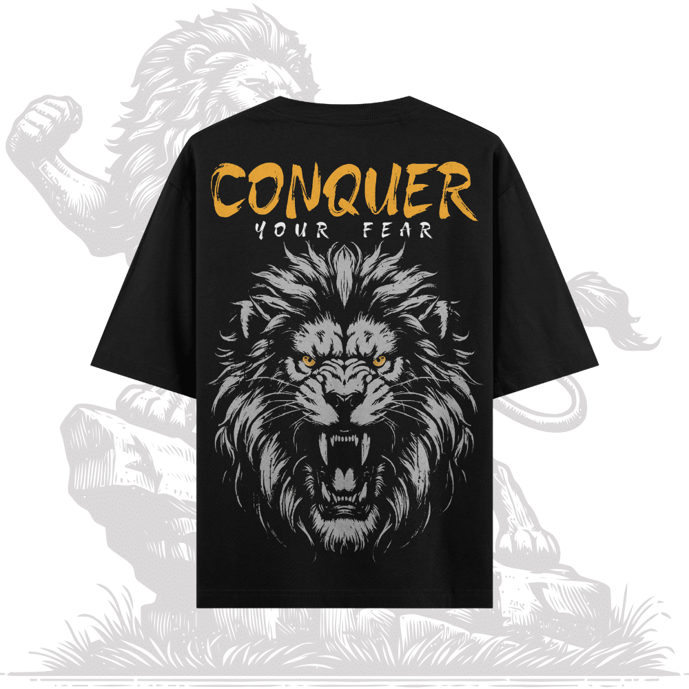 Be the first to review “Conquer Your Fear – Oversized Black Graphic T-Shirt (Lion Print)” Cancel reply