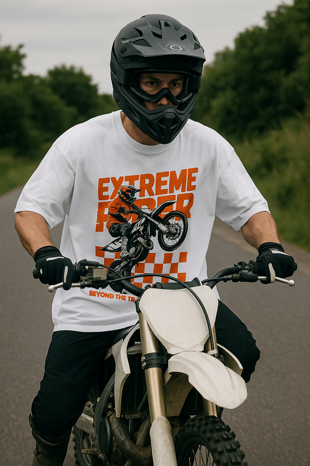 Extreme Rider Oversized White T-Shirt – Motocross Graphic Tee