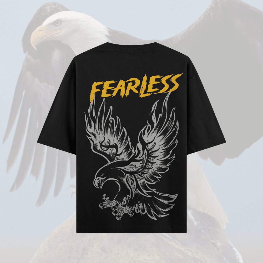 Fearless Eagle Oversized T-Shirt – Cotton French Terry | Black