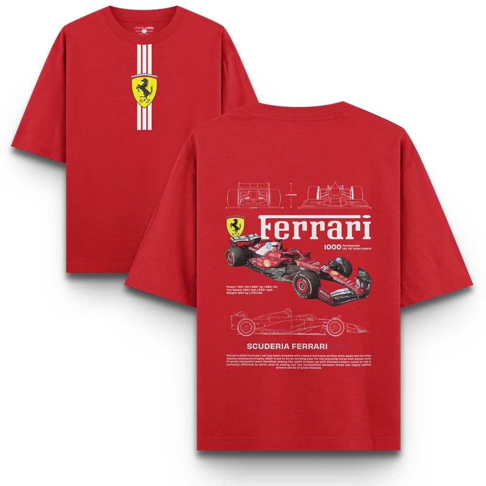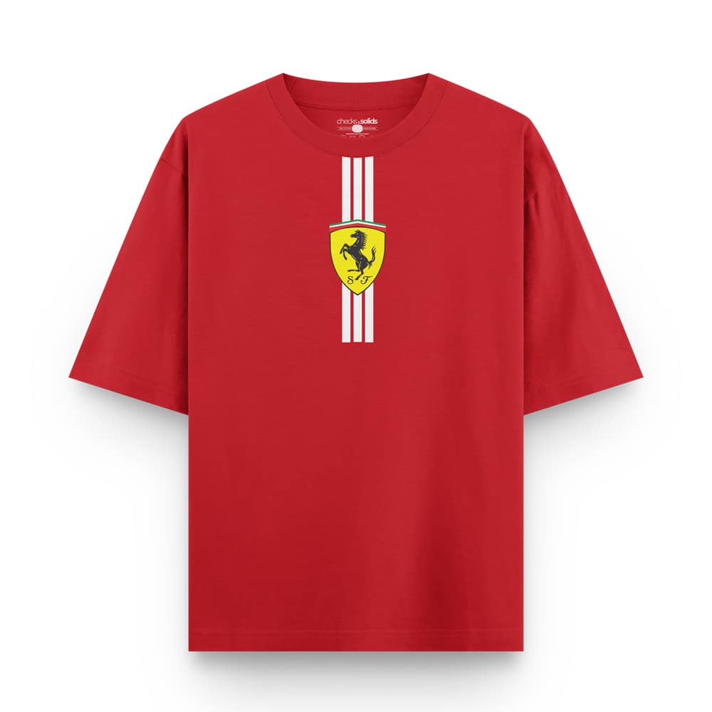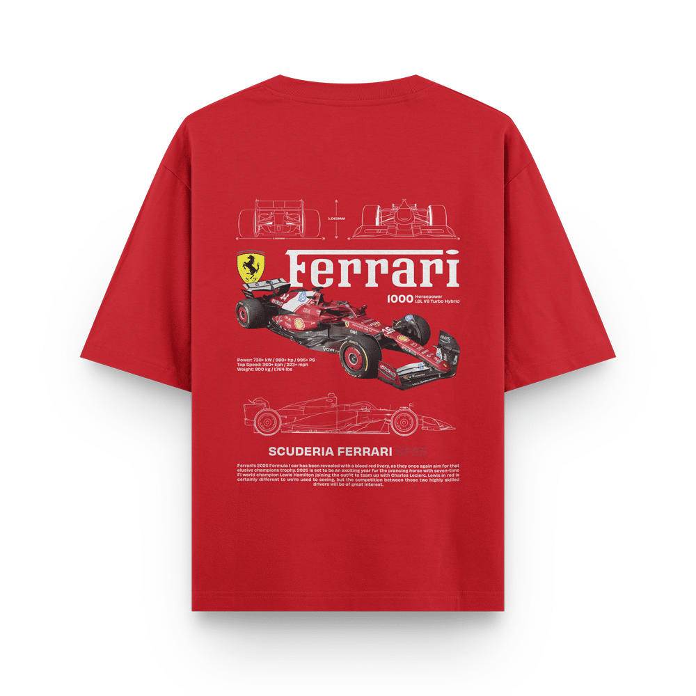 Ferrari oversized t-shirt, F1 racing tee, Scuderia Ferrari streetwear, red oversized t-shirt, premium motorsport apparel.