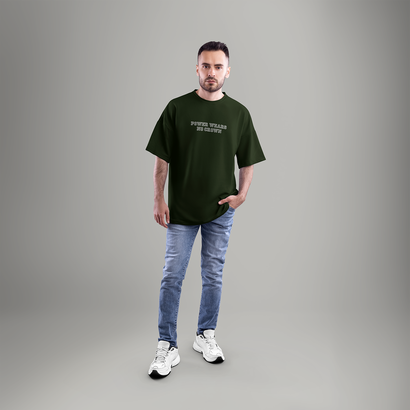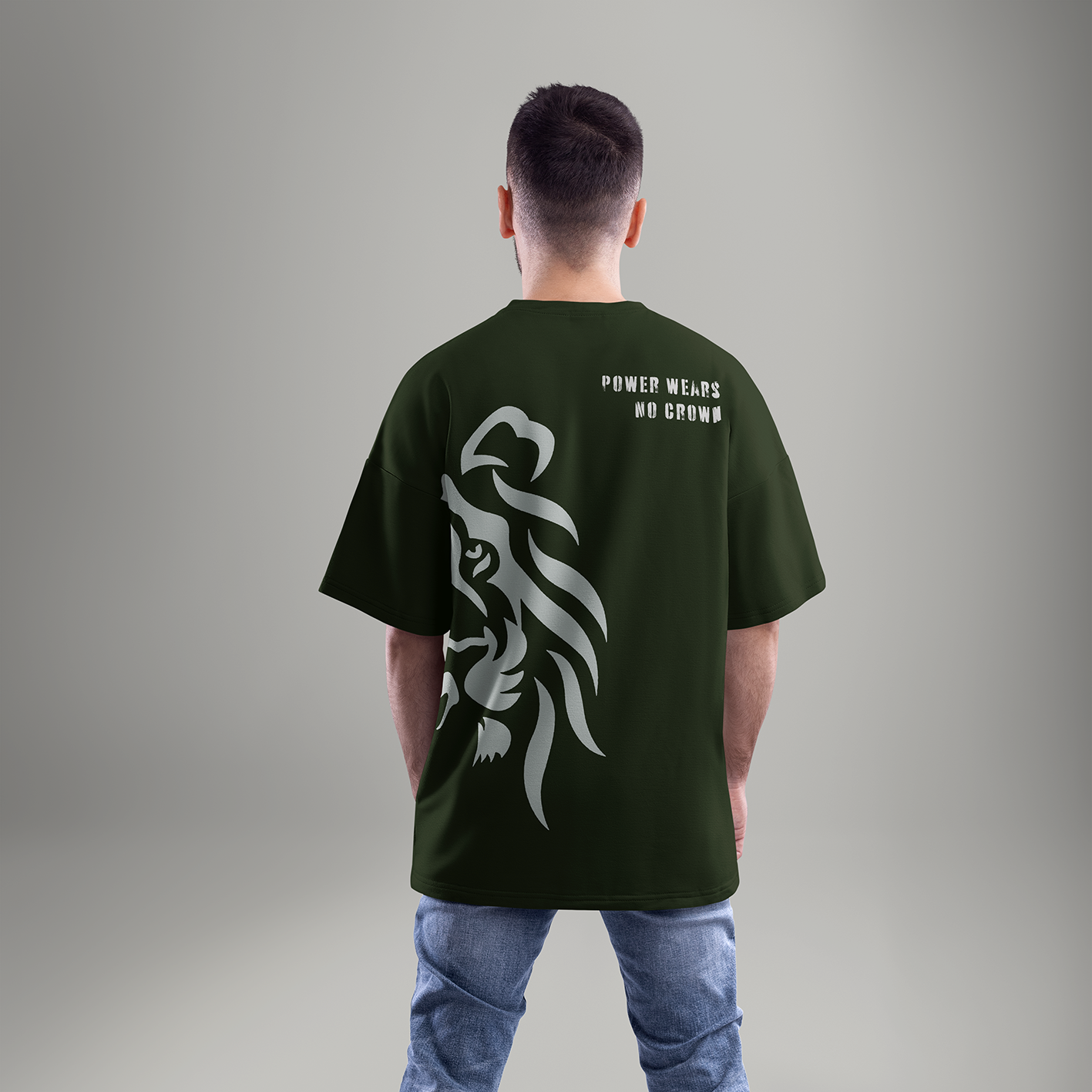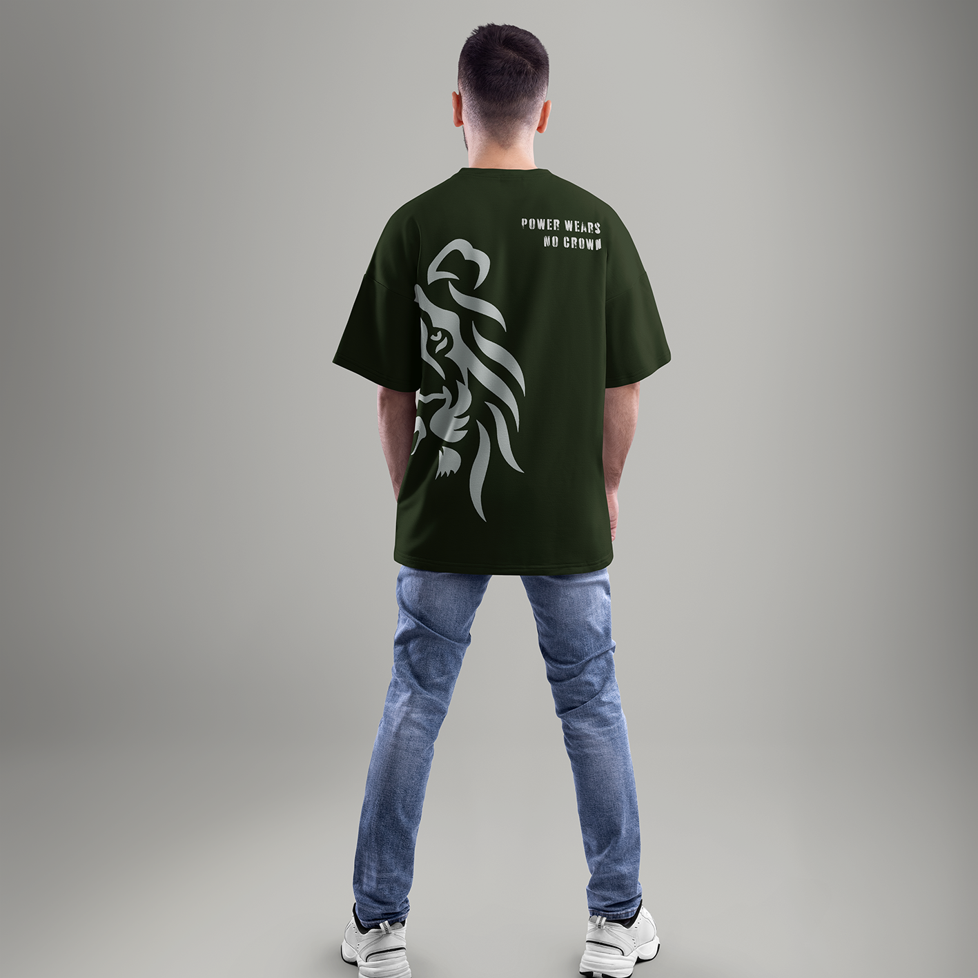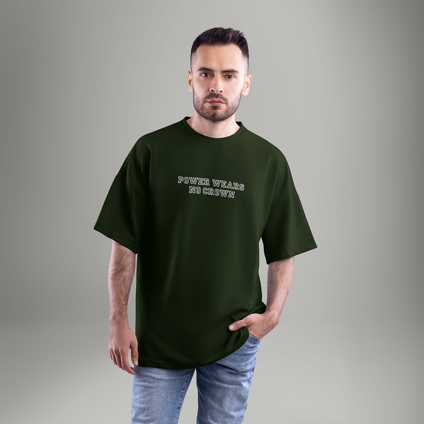 Power Wears No Crown Printed Men’s Oversized Green T-shirt